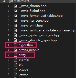 順便一提 當你在 c++ 中做 #include 時,外部相依性 會自動幫你把所 #include 的 header 及其相關的引用自動加入 外部相依性